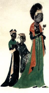 戴面幕的唐代妇女(日本东京国立博物馆藏唐人《树下人物图》)