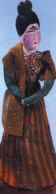 穿襦裙及联珠纹锦半臂的唐代妇女(新疆吐鲁番阿斯塔那唐墓出土泥头木身著衣俑)