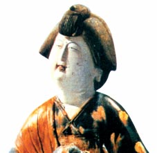 戴胡帽、穿胡服、佩蹀躞带的人物(陕西西安出土三彩俑)