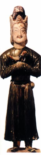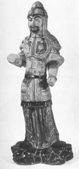穿绢布甲的唐代武士(新疆吐鲁番阿斯塔那出土彩绘木俑)