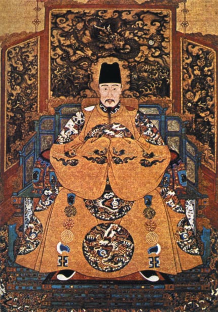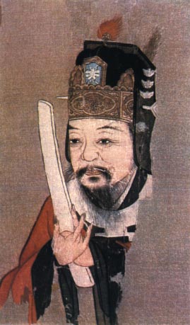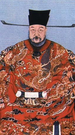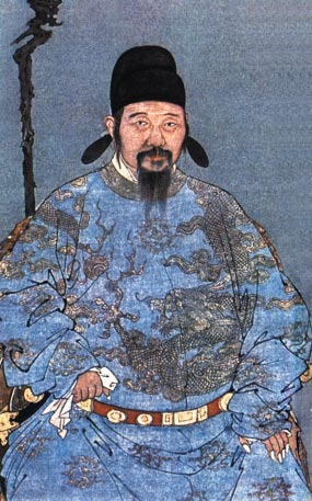戴乌纱折上巾、穿盘领、窄袖、绣龙袍的皇帝(南薰殿旧藏《历代帝王像》)