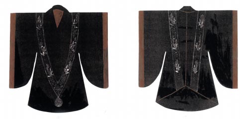 这种形式与元代以来的辫线袄近似,明朝起初称为“曳撒”,是君臣外出乘马时所穿的袍式,后来明代士大夫日常也穿这种形式的服装,称其为“程子衣”。它的特点是大襟、右衽、斜领、袖子宽松,前襟的腰部有接缝,下面打满褶裥。