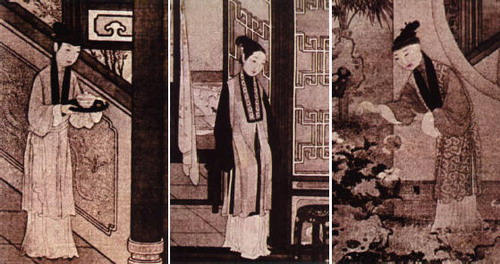 穿窄袖背子的贵妇及侍女(唐寅《簪花仕女图》)