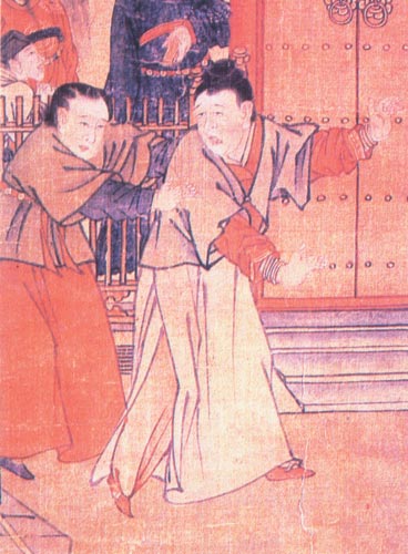 穿弓鞋的妇女(山西宾宁寺明《水陆画》局部)
