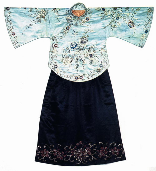 彩绣阔镶边旗袍——清末满族妇女服装样式