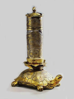 通高34.2厘米,筒深22厘米,龟长24.6厘米.