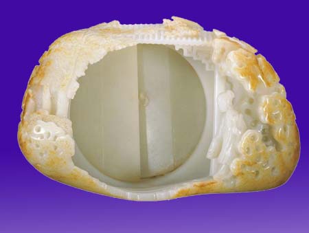 这件作品雕成后,深得乾隆皇帝赏识,特制“御题诗”和“御识文”命人阴刻于器底。“御识文”叙述了玉材及雕琢情况。御题诗是乾隆赞美这件稀世玉雕的,“义重无弃物,蠃他泣楚廷”,意即玉工之“义”,比之卞和在楚国宫廷上不怕断足致残,多次器献玉璞之举还“重”,将爱玉的情感推向极致。