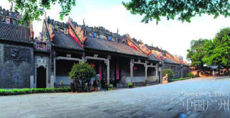 陈家祠又称陈氏书院,顾名思义,它是当时广东省72县陈姓的族祠和书院。清光绪十六年(1890年)始建,光绪二十年(1894)落成。它是广东省现存宗祠建筑中规模最大的一座,也是岭南民间建筑装饰艺术最丰富最有代表性的一座。其规模宏大,布局严谨,气势雄伟,装饰巧夺天工,富丽堂皇,被誉为岭南建筑艺术的宝库、“百粤冠祠”,闻名于国内外。19世纪20年代德国《世界建筑艺术》和日本《岭南纪胜》等外籍中已有所记述,备受推崇。