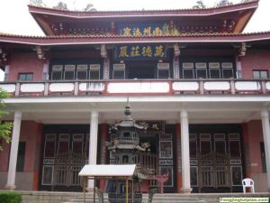 在漳州南山寺的大雄宝殿里有一口大铜钟,直径3.8尺,高大约5尺,重达130多斤,细看,钟的表面有一支铜钗和两枚铜钱的痕迹。