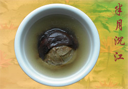 其实,这“半月沉江”原来只是一道很普通的菜,它是用面筋和香菰揉制而成的,制作简单,外观平常,很难登大雅之堂。它的出名,只是因为这之中有一段颇有雅趣的故事。