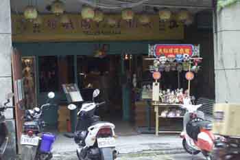 大稻埕偶戏馆位于台北市民乐街,紧邻贩卖南北干货的迪化街,左右是经营中药和土特产的商家,对面是一家时髦的咖啡馆。原来偶戏馆租用的是一间旧式洋楼,完全不是想象中的博物馆规模。走进不足15平方米的馆内才感到这里的世界异常精彩,迎面是表演木偶戏的小舞台,左右两面墙从上至下布满布袋偶、提线偶、历史图片等。管理人员谢晓婷小姐热情地介绍说,这里收藏着一万多件木偶精品,由于没有展馆,只能藏在箱内,规划中的新博物馆建好后,你们就可以看到我们的藏品。