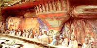 大足石刻位于四川省重庆市,是大足县境内主要表现为摩崖造像的石窟艺术的总称。以大足县、潼南县、铜梁县、壁山县为范围,在此地可赏到代表中国唐、宋时期的石刻造像艺术。大足石刻群有石刻造像70多处,总计10万多躯,其中以宝顶山和北山摩崖石刻最为著名,其以佛教造像为主,儒、道教造像并陈,是中国晚期石窟造像艺术的典范,规模之宏大,艺术之精湛,内容之丰富,可与敦煌莫高窟、云冈石窟、龙门石窟齐名。