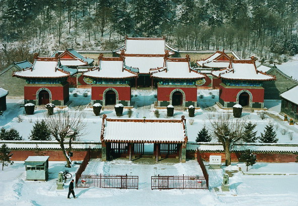 位于沈阳市区北部,俗称北陵,是清太宗皇太极和孝端文皇后博尔济吉特氏的陵寝。建成于顺治八年(1651年),至今已有350年的历史。昭陵在“关外三陵”中规模最大,其面积为450万平方米。从布局上分为三大部分。第一部分从下马碑到正红门。主要建筑有华表、石狮子、石桥、石牌坊等。第二部分从正红门到方城。其间的主要建筑有华表两对、石兽六对(石狮子、石麒麟、石獬豸、石骆驼、石马和石象各一对),石兽群北中轴线上有碑亭,内有康熙撰文的“昭陵神功圣德碑”。第三部分:方城、月牙城、宝顶等。这部分主要建筑有隆恩殿、隆恩门、明楼、焚帛亭和地宫等。