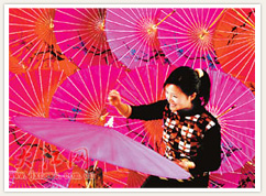 纸伞伞面画有精美的花鸟、仕女、风景等图案,以优质木竹、皮纸、桐油、柿树油为原料制作而成,不仅晴雨相宜,经久耐用,而且美观轻便、古朴别致,有较高的欣赏价值,素为女士青睐。特别是在雨中,持伞漫步,倾听雨滴击打油纸伞面发出的声音,可感受到古人所吟“留得残荷听雨声”之妙。