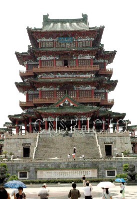 滕王阁位于江西南昌市赣江边东岸,与湖南岳阳楼、湖北黄鹤楼并称江南三大名楼。滕王阁饱经沧桑,历史上屡毁屡建达28次之多,世所罕见。现在的滕王阁建于1985年,滕王阁主体建筑9层,净高 57.5米,占地达 47000平方米,建筑面积1.5万平方米。仿宋风格,临江而立,“明三暗七”格式,毛泽东手书的《滕王阁序》中最著名的两句是“落霞与孤鹜齐飞,秋水共长天一色”作为主阁正门的巨联,暮秋之后,鄱阳湖区将有成千上万只候鸟飞临,那将构成一幅活生生的“落霞与孤鹜齐飞,秋水共长天一色”图,成为滕王阁的一景。(王辉 摄)