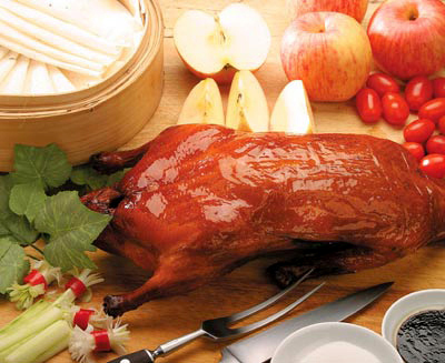 驰名中外的北京全聚德烤鸭店,是清朝同治三年(1864年)开业的,至今已有120多年的历史。全聚德烤鸭为挂炉烤鸭,是誉满中外的北京特殊风味食品,国际友人称之为“世界美味之冠”。
