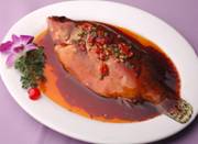 徽州水产类传统名菜。俗名“臭鳜鱼”,制法独特,食而得异香。相传在200多年前,沿江一带的贵池、铜陵、大通等地鱼贩每年入冬时将长江名贵水产鳜鱼用木桶装运至徽州山区出售(当时有“桶鱼”之称),途中为防止鲜鱼变质,采用一层鱼洒一层淡盐水的办法,经常上下翻动。如此七八天抵达屯溪等地时,鱼鳃仍是红色,鳞不脱,质未变,只是表皮散发出一种似臭非臭的特殊气味,但是洗净后经热油稍煎,细火烹调后,非但无臭味,反而鲜香无比,成为脍炙人口的佳肴延续下来,至今盛誉不衰。如今烹制此菜不再使用桶鱼,而是用新鲜的徽州自产桃花鳜(每年桃花盛开、春讯发水之时,此鱼长得最为肥嫩,故名)用盐或浓鲜的肉卤腌制,再用传统的烹调方法烧制,故称“腌鲜鳜”。