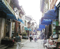 在屯溪老街的数百家店铺中,有好几家百年老店:如胡开文墨庄、程德馨酱园、同德仁药店等;还有一些古玩字画店,如徽安斋、四宝堂、汲古斋等。这条街在数次整修后仍然保持了原貌,店铺夹道错落有致、古色古香。屯溪老街一旁便是新安江。新安江有“百丈见游鳞,深浅皆见底”之称。李白有诗曰:“闻说金华渡,东连五百滩。他年一携手,摇艇入新安。人行明镜中,鸟度屏风里。借问新安江,见底何如此”。