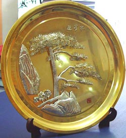 芜湖铁画,先后参加了法国巴黎世界博览会、匈牙利布达佩斯造型艺术展,并赴日本、科威特、意大利、尼日利亚、沙特、香港等二十多个国家和地区展出, 1959年~1960年老艺人储炎庆和几位弟子制作的大型铁画《迎客松》、《梅山水库》和铁书法《沁园春·雪》等作品布置在人民大会堂。芜湖铁画历经了340多年的承传和发展,在传统形式的尺幅小景、画灯、屏风基础上,又创有立体铁画、盆景铁画、瓷板铁画和镀金铁画,形成了座屏、壁画、书法、装饰陈设和文化礼品等五大系列二百多个品种,以其与众不同的艺术风格和魅力,在艺坛独树一帜。