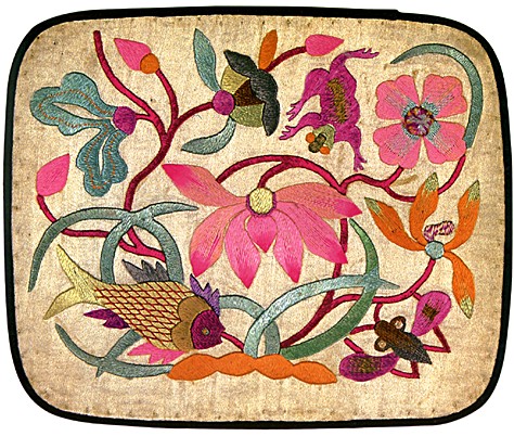 湖北民间刺绣内容多以花卉鸟兽为主,色彩讲究饱和鲜明,造型强调夸张洗炼。绣品中的纹样都有一定的“说头”:或祈求人寿年丰,吉祥如意;或憧憬爱情幸福,家庭美满和睦;或寓意家族兴旺,子孙万代绵延,充分反映了人民的善良愿望。