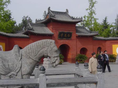 在河南洛阳市东郊一片郁郁葱葱的长林古木之中,有一座被称为“中国第一古刹”的白马寺。这座2000多年前建造在邙山、洛水之间的寺院,以它那巍峨的殿阁和高峭的宝塔,吸引着一批又一批的游人。