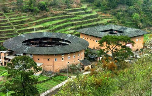 福建客家土楼起源于唐末宋初,距今已有1000多年历史,它是客家人从黄河流域迁徙到南方而保留下来的一种生土建筑艺术,以历史悠久、结构奇巧、规模宏大、文化内涵丰富闻名于世,被誉为“中国古建筑的一朵奇葩”、“神秘的东方古城堡”。(张国俊摄)