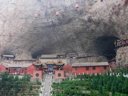 介休绵山以奇、险、秀闻名,抱腹岩之“腹”大,抱二百余间殿宇馆舍及一两万名游人于其内而不满,明末清初大学者傅山曾题写长联赞叹这一景观的“绝无仅有”。绵山中上层有许多以崖壁开凿的古栈道,多云天气漫步宽进仅一米的天桥,人在桥上过,云在脚下涌,平步青云,飘飘欲仙。