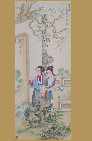 据说,在较长时间的创作生产中,胡、赵、杜三人在题材方面又各有侧重,各有拿手的“好活”。胡玉显喜欢画“八仙屏”“天女散花”“三仙姑下凡”“胖娃娃”等题材的扑灰年画,赵大伦靠画墨屏美人条(大挂画)发了财,曾一气买地160多亩,成了赵家圈的富户。因此,街坊以羡慕的口吻送他一句顺口溜,“一人有才,全家福来”杜家官庄的杜万则善画刀马人物,比如三国人物,杨家将,岳飞等,同时还兼画大挂子画,如“万事如意”“尤鲸献瑞”等。