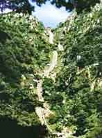 后石坞为泰山“奥”区,景致清而幽。后石坞松涛为岱阴一绝,大、小天烛峰宛如两把长剑直刺青天,百丈瀑、天烛瀑飞流直下,声震十里。