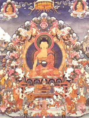 唐卡,即布画,是藏传佛特有的一种绘画艺术,一般以亚麻布或粗毛布为底布,较为珍贵的由以丝绸为底布,涂以动物胶和细石灰调合而成的糊状物,干燥后用木炭条起稿,然后以石黄、石绿、石青、朱砂等不透明的矿物和植物质颜料着色。颜料内均调入动物胶和牛胆汁,以保持色泽鲜艳,经久常新。唐卡题材多为佛像画、高僧或大师的传记画,少量为民间生活风俗画。