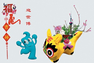2010年是中国世博年,早为国人所期待。此届世博会即将在上海举办,这不仅是中国人民的头等大事,也是全世界华人的荣耀。为此作者借用春节来临及世博会举办之际,插制一件《福虎吉祥迎世博》的插花作品供大家欣赏。