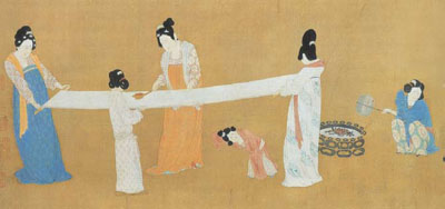 张萱《捣练图》卷(37cm×145.3cm),美国波士顿博物馆藏 |