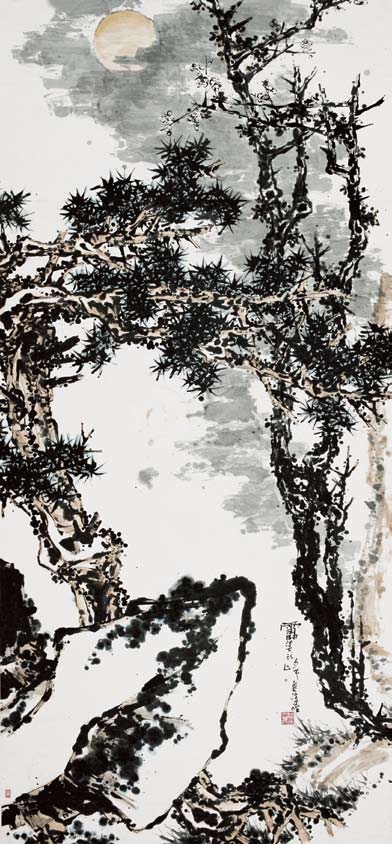 潘天寿《松石梅月图》(329cm×149cm),潘天寿纪念馆藏