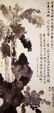 徐渭(1521-1593年),字文长,号天池,又号青藤,浙江山阴(今绍兴)人。年轻时所写的杂剧《四声猿》曾深得明朝大剧作家汤显祖的赞许。徐渭一生潦倒,北京故宫博物院藏。多次应试未第,一度精神失常,以致误杀妻子而被捕,出狱时已届暮年,至73岁时去世,真正的艺术生涯仅十余年。他曾赋诗道:半生落泊已成翁,独立书斋啸晚风,笔底明珠无处买,闲抛闲掷野藤中。徐渭的花鸟画和书法,世称“青藤体”,吸取宋、元及沈周、林良等的长处,一反吴门派文人画恬适闲雅的意趣,而直抒激荡不平的心情,大胆突破客观物象形质的局限,赋予物象以强烈的个人情感。作品或缘物抒情,或借题发挥。以狂草般的笔法纵情挥洒,形象脱略形似,纵横睥睨,墨色滋润淋漓,奔放流动,充分发挥了生宣纸的晕渗效果。现存作品如《牡丹礁石图》、《墨葡萄图》、《墨花图》等,都笔酣墨饱,淋漓尽致。清代书画家、“扬州八怪”之一郑燮(郑板桥)看见他的画,大为赞叹,曾用“五十金易天池(徐渭)石榴一枝”,还刻了一方“青藤门下走狗”的印,以示对他的仰慕。近代齐白石提及徐渭,也说自己恨不得早生三百年为“青藤磨墨理纸”,表达对他的无限尊崇。徐渭近似于狂草书法的水墨大写意,对清代大师级画  家朱耷、石涛、扬州八怪、近代画家吴昌硕、齐白石等人的画风,都极具启发意义。