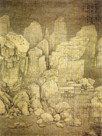 黄公望《剡溪访戴图》(76.6cm×55.3cm),云南省博物馆藏
