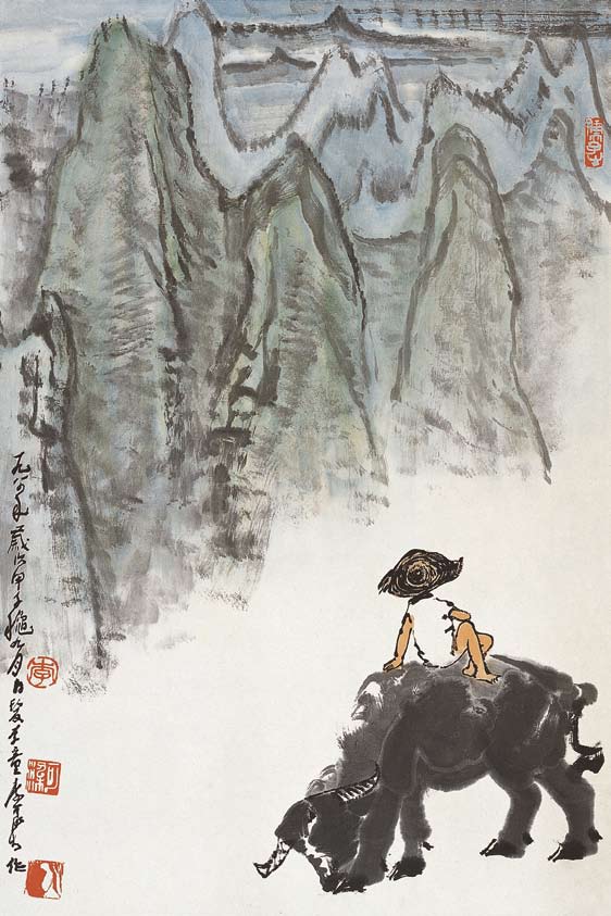 李可染(1907-1989年)《看山图》(68.4cm×45.6cm),1984年作