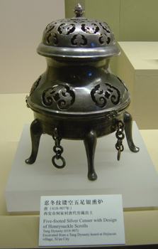 忍冬纹镂空五足银熏炉