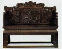 这件宝座上承古制,成为最典型的清代宝座式样。其结构明确地显示出它是由古时的床和床后放置的屏风相结合进化而来的。这样的结构,使得宝座脱离了椅子的形式,成为最威严、最有气势的一类坐具。