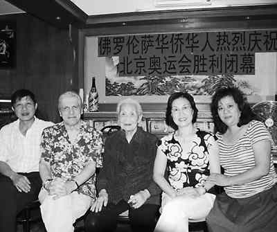 意大利各地的华侨华人和留学生近日纷纷举行各种活动,庆祝2008北京奥运会圆满闭幕。侨居在意大利佛罗伦萨、出生于1915年93岁高龄的老华侨徐纫兰(中)女士,按捺不住心中的激动,也来到了佛罗伦萨庆祝酒会现场。(欧联)