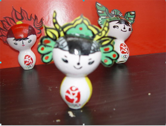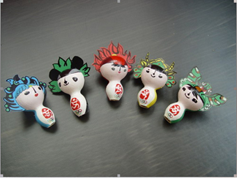 2、将葫芦先用白色水粉涂3—4次,直到涂匀。再根据福娃特征进行色彩装饰。