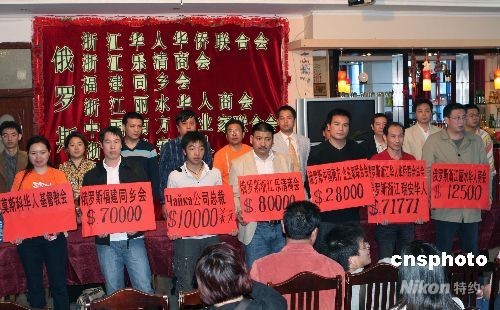 记者在捐助现场看到,有旅居俄罗斯十几年事业有成的华商,有在市场上靠打工为生的华人。此时此刻,大家不分贫富贵贱,纷纷解囊相助。华人们的行动感染了在大市场工作的俄罗斯人、越南人、高加索人、土耳其人,他们也自愿加入了捐款的长队。
