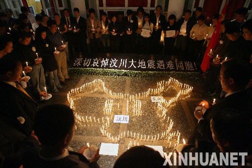 当晚各地的悼念活动在庄严肃穆的气氛中进行,全球华侨华人用烛光为死者祈祷,为生者加油。他们齐呼“四川加油”、“中国加油”、“全球华人加油”,声音响彻夜空。
