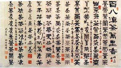 百字图,也叫百字迎福图。在中国传统文化中有它的一种特定含义。由于它含有大或者无穷的意思,因此把祝福、恭贺的良好愿望发挥到了一种极致的状态。在礼仪之邦的中国,上到古代的皇帝、士大夫,下到普通文人、平民,都愿意在喜庆、甚至平时用上它,因为大家相信,愿望好的结果一定会好。