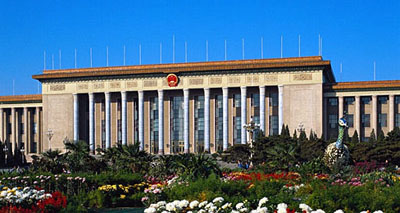 广场西面是人民大会堂,这里是全国人大的办公地点。东面是中国革命博物馆和中国历史博物馆,在广场中央矗立着人民英雄纪念碑。在纪念碑南面是毛主席纪念堂,一代伟人毛泽东的遗体安放于此,人们可以入内瞻仰。
